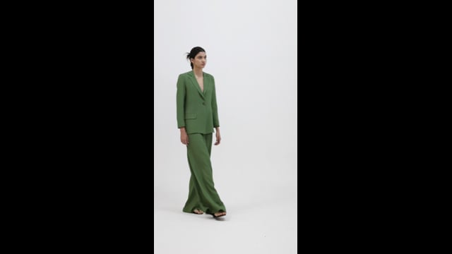 Blazer com modelagem levemente ampla. Produzido em crepe d e alta qualidade com forro super macio em algodão orgânico. Fechamento frontal com Ecobotão de semente de Corozo. Par de ombreiras.
